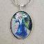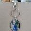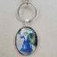 Un grand porte-clés ovale en argent, reproduisant une peinture de la galerie ARTKELA représentant une dame en robe bleue ; entièrement fait main.
