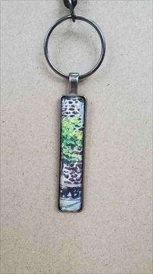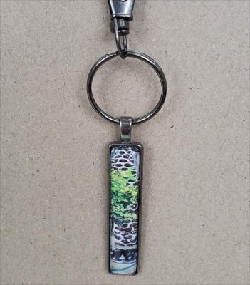 Porte-clés rectangulaire reproduisant une peinture de la galerie ARTKELA, noir, chien ; entièrement fait main.