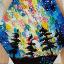 Aimant hexagonal avec un ciel étoilé au-dessus d'une forêt dans le silence silencieux du Québec 217012026 peint à la peinture acrylique sur une base en bois et verni.