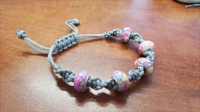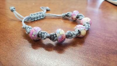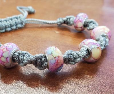Bracelet en macramé gris avec perles Pandora roses, nœud pivotant