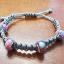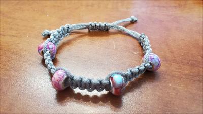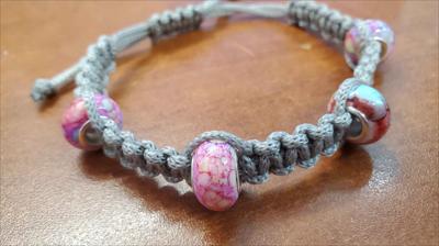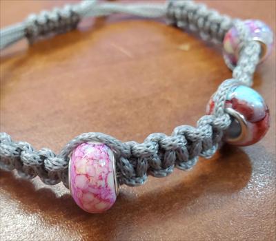 Bracelet en macramé gris avec perles Pandora roses, nœud plat