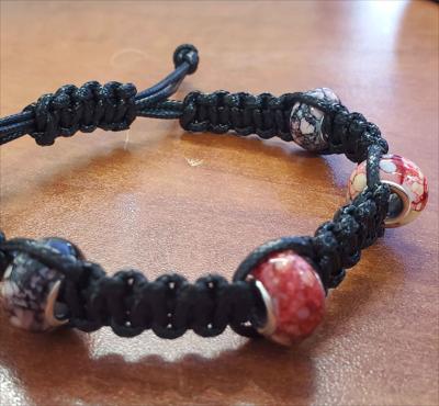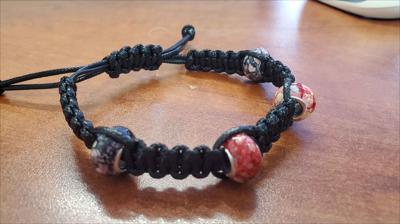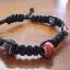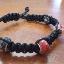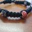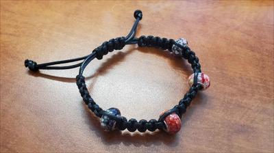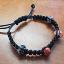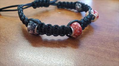 Bracelet macramé noir à nœud plat carré avec perles rouges