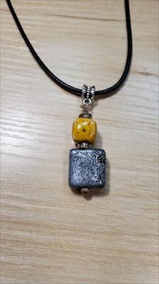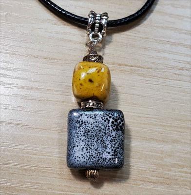 Pendentif en céramique à motifs carrés jaunes et gris
