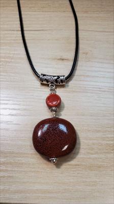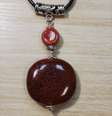 Pendentif représentant une planète aplatie avec ses pôles, bordeaux