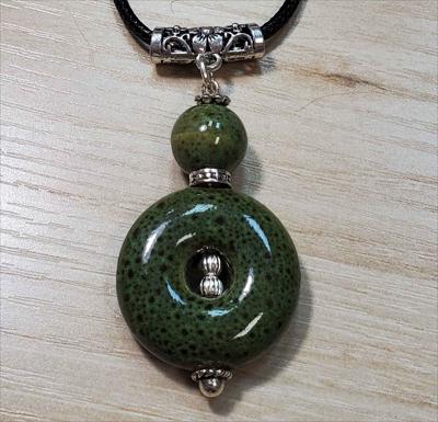 Pendentif donut galaxie verte avec éléments ronds, entièrement fait main.