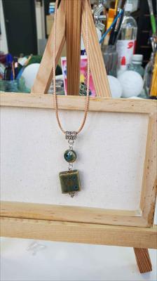 Pendentif en céramique avec turquoise bleue et un œil