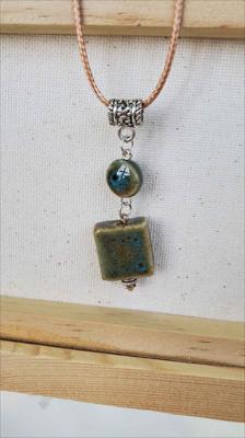Pendentif en céramique orné de turquoise bleue et d'un œil, entièrement assemblé à la main.