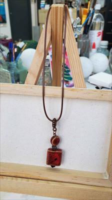 Pendentif en céramique bordeaux avec îlot