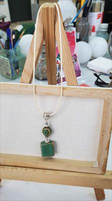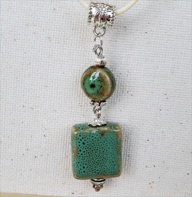 Pendentif en céramique orné de turquoise vert clair et d'un œil, entièrement assemblé à la main.