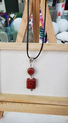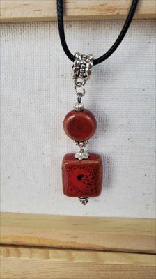 Pendentif en céramique bordeaux, élément carré et rond