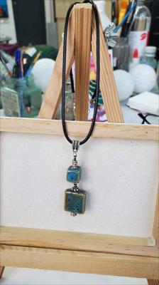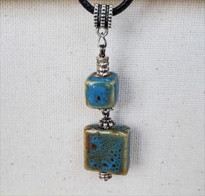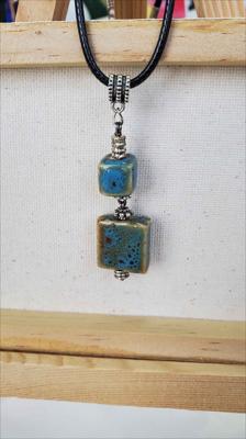 Pendentif en céramique avec des touches de turquoise kibiki et de bleu