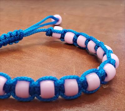 Bracelet en macramé avec perles roses en plastique 117012026