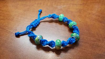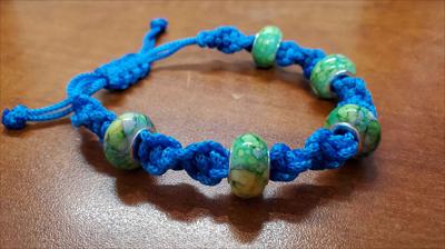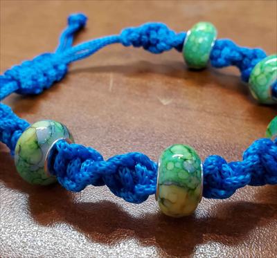 Bracelet en macramé bleu avec perles vertes Pandora 221012026, entièrement fait main.