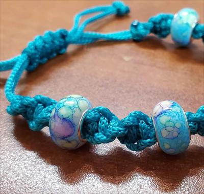 Bracelet en macramé turquoise avec perles turquoise Pandora 321012026, entièrement fait main.