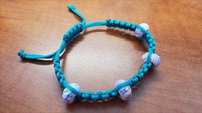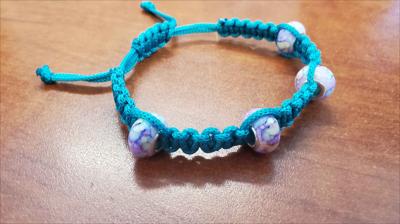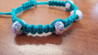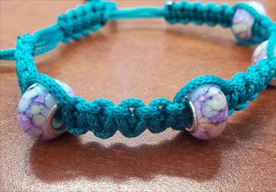 Bracelet en macramé turquoise avec perles lilas Pandora 421012026, entièrement fait main.
