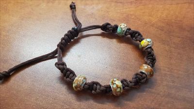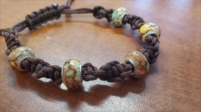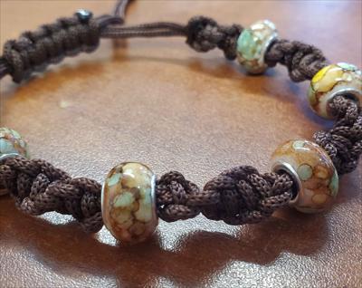 Bracelet en macramé marron avec nœud pivotant et perles marron Pandora 521012026, entièrement fait main.