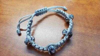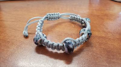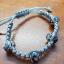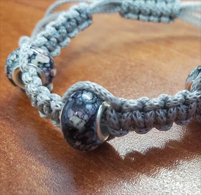 Bracelet en macramé gris avec un nœud carré droit et des perles foncées Pandora 821012026, entièrement fait main.