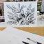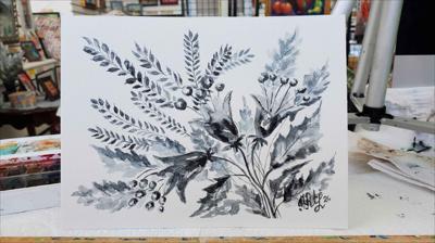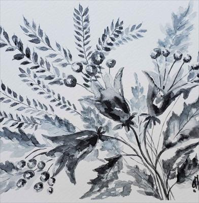 Cloches qui sonnent dans la prairie, aquarelle en noir et blanc