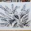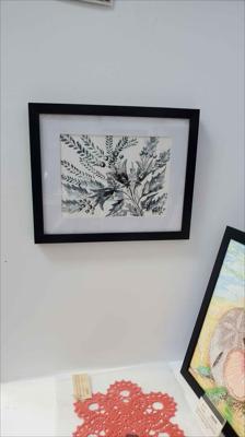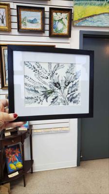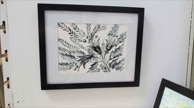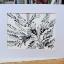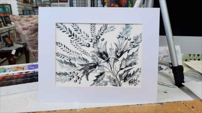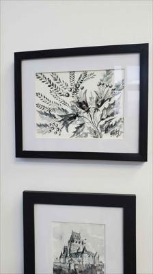 Cloches sonnant dans la prairie, aquarelle en noir et blanc, le tableau est peint à l'aquarelle sur papier aquarelle et encadré d'un passe-partout.
