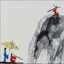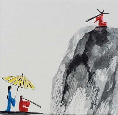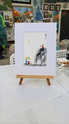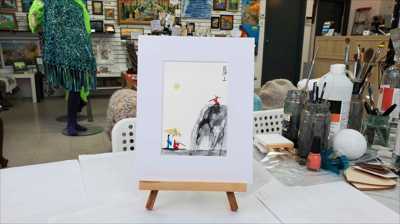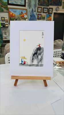 Quelque part sur une rivière dans une province chinoise, le tableau est réalisé à l'aquarelle sur papier et encadré d'un passe-partout.