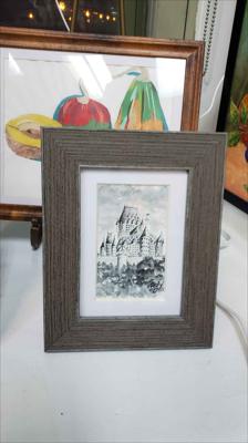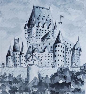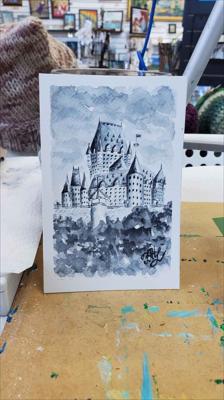 Le majestueux et magnifique Château Frontenac, symbole de la ville de Québec, est représenté dans ce tableau réalisé à l'aquarelle sur papier aquarelle et encadré sous passe-partout.