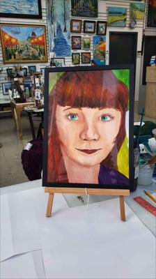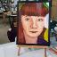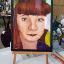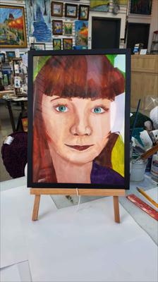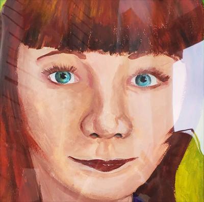 Portrait d'une jeune fille rousse aux yeux gris-bleus, peint à la gouache sur papier.